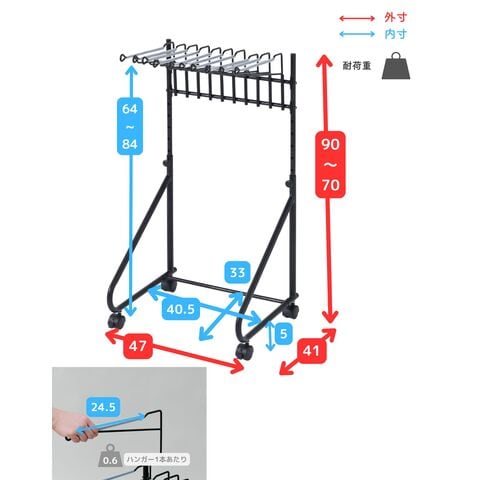 | 商品説明 | ●クローゼット下を使って、パンツをたたまず収納できるハンガーラック ●長めのボトムスも掛けられる、高さ最小70から最大90cmの伸縮式 ●デニムもOK、しっかり構造のスラックスハンガーラック ●バーはスイング式、着脱もできて出し入れラクラク ●滑り止めのシリコンキャップ付きなのでズレ落ちるストレス緩和 ●バーの高さは約4cm間隔、6段調整 ●押入れ下段にも入る高さ70cm設計(※押入れのサイズはご確認ください。) ●フレームはしっかり構造、端部はハンドルのようにつかむことも可能 ●脚部間内寸:幅40.5 奥行33cm ●スラックスバー内寸長さ:24.5cm ●床からスラックスバーまでの高さ:67-87cm ●全体耐荷重6kg(1本あたり0.6kg) ●キャスター4個(うちストッパー付き2個) |
