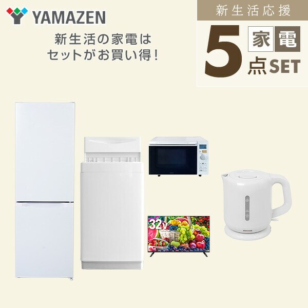 | 山善 YAMAZEN 【新生活応援セット】 家電セット 一人暮らし 新生活家電 5点セット 新品 ( 6kg洗濯機 157L冷蔵庫 オーブンレンジ 32型液晶テレビ 電気ケトル ) |