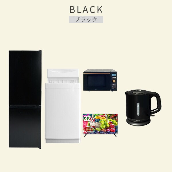 | 商品説明 | 【洗濯機】 ●容量:6.0kg(洗濯時)、1.5kg(風乾燥時) ●8つのコース搭載(標準・毛布・おいそぎ・ドライ・ソフト・つけおき・部屋干し・槽洗浄) 【冷蔵庫】 ●容量:157L(冷蔵室109L/冷凍室48L) ●年間消費電力量:270kWh/年 【オーブンレンジ】 ●容量18L、フラットテーブル ●高周波出力:650W(60Hzのみ)/500W/200W相当 【32型液晶テレビ】 ●サイズ:32V型 ●2K対応ハイビジョン液晶テレビ 【電気ケトル】 ●容量:1.0L ●空焚き防止機能搭載 ●ラック以外メーカー保証:1年間 |