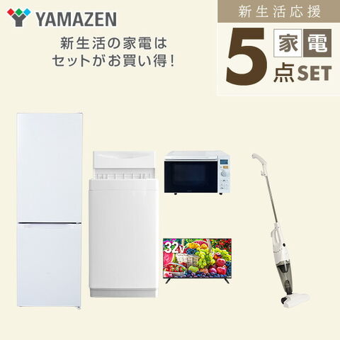 | 山善 YAMAZEN 【新生活応援セット】 家電セット 一人暮らし 新生活家電 5点セット 新品 ( 6kg洗濯機 157L冷蔵庫 オーブンレンジ 32型液晶テレビ スティッククリーナー ) |