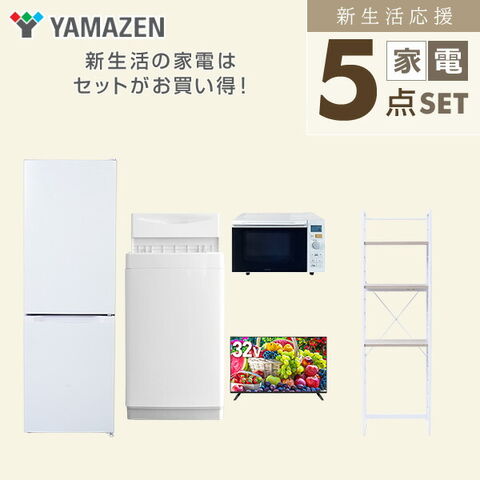 | 山善 YAMAZEN 【新生活応援セット】 家電セット 一人暮らし 新生活家電 5点セット 新品 ( 6kg洗濯機 157L冷蔵庫 オーブンレンジ 32型液晶テレビ 家電収納ラック ) |