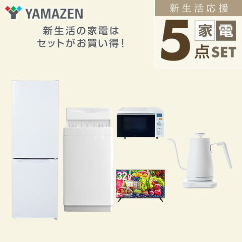 | 山善 YAMAZEN 【新生活応援セット】 家電セット 一人暮らし 新生活家電 5点セット 新品 ( 6kg洗濯機 157L冷蔵庫 オーブンレンジ 32型液晶テレビ 温調ケトル ) |