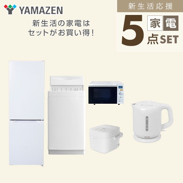 | 山善 YAMAZEN 【新生活応援セット】 家電セット 一人暮らし 新生活家電 5点セット 新品 ( 6kg洗濯機 157L冷蔵庫 オーブンレンジ 炊飯器 電気ケトル ) |