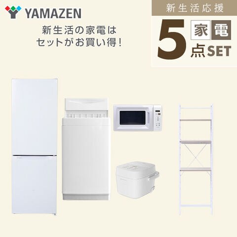 | 山善 YAMAZEN 【新生活応援セット】 家電セット 一人暮らし 新生活家電 5点セット 新品 ( 6kg洗濯機 157L冷蔵庫 電子レンジ 炊飯器 家電収納ラック ) |