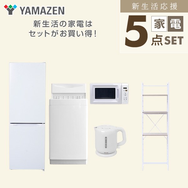 新生活家電セット 5点セット 一人暮らし (6kg洗濯機 157L冷蔵庫 電子レンジ 電気ケトル 家電収納ラック) ひとり暮らし 単身赴任新 学生 入学 おすすめ 山善 YAMAZEN【送料無料】