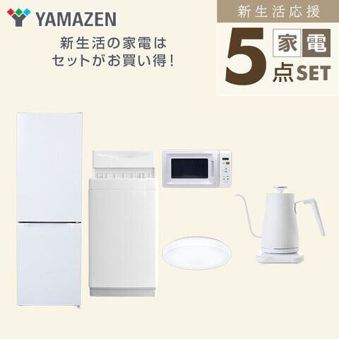 | 山善 YAMAZEN 【新生活応援セット】 家電セット 一人暮らし 新生活家電 5点セット 新品 ( 6kg洗濯機 157L冷蔵庫 電子レンジ シーリングライト 温調ケトル ) |