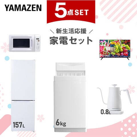 | 山善 YAMAZEN 【新生活応援セット】 家電セット 一人暮らし 新生活家電 5点セット 新品 ( 6kg洗濯機 157L冷蔵庫 電子レンジ 32型液晶テレビ 温調ケトル ) |