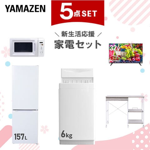 新生活家電セット 5点セット 一人暮らし (6kg洗濯機 157L冷蔵庫 電子レンジ 32型液晶テレビ レンジラック) ひとり暮らし 単身赴任新 学生 入学 おすすめ 山善 YAMAZEN【送料無料】