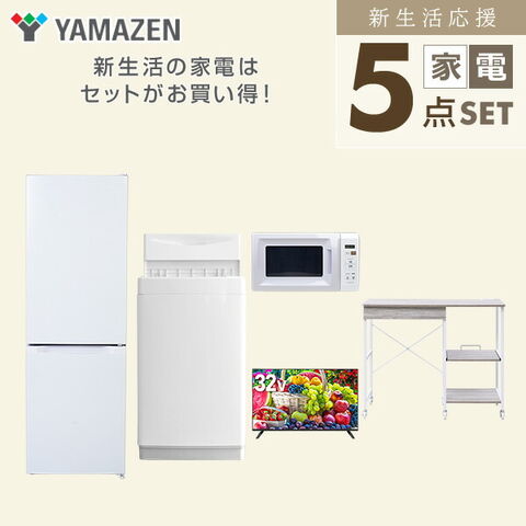 | 山善 YAMAZEN 【新生活応援セット】 家電セット 一人暮らし 新生活家電 5点セット 新品 ( 6kg洗濯機 157L冷蔵庫 電子レンジ 32型液晶テレビ レンジラック ) |