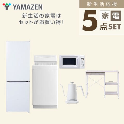 | 山善 YAMAZEN 【新生活応援セット】 家電セット 一人暮らし 新生活家電 5点セット 新品 ( 6kg洗濯機 157L冷蔵庫 電子レンジ 温調ケトル レンジラック ) |