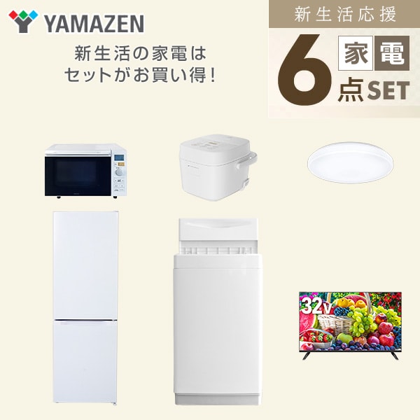 新生活家電セット 6点セット 一人暮らし (6kg洗濯機 157L冷蔵庫 オーブンレンジ 炊飯器 シーリングライト 32型液晶テレビ) ひとり暮らし 単身赴任新 学生 入学 おすすめ 山善 YAMAZEN【送料無料】