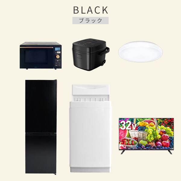 | 商品説明 | 【洗濯機】 ●容量:6.0kg(洗濯時)、1.5kg(風乾燥時) ●8つのコース搭載(標準・毛布・おいそぎ・ドライ・ソフト・つけおき・部屋干し・槽洗浄) 【冷蔵庫】 ●容量:157L(冷蔵室109L/冷凍室48L) ●年間消費電力量:270kWh/年 【オーブンレンジ】 ●容量18L、フラットテーブル ●高周波出力:650W(60Hzのみ)/500W/200W相当 【炊飯器】 ●炊飯容量:3.0合炊き ●8種の炊き分けメニュー:省エネ、白米、早炊き、玄米、無洗米、炊込み、おかゆ、温度調理 【シーリングライト】 ●全光束:3600lm ●30分、60分OFFタイマー付き 【32型液晶テレビ】 ●サイズ:32V型 ●2K対応ハイビジョン液晶テレビ ●ラック以外メーカー保証:1年間 |