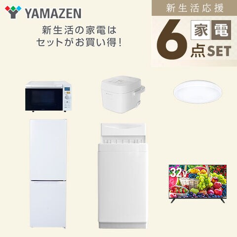 | 山善 YAMAZEN 【新生活応援セット】 家電セット 一人暮らし 新生活家電 6点セット 新品 ( 6kg洗濯機 157L冷蔵庫 オーブンレンジ 炊飯器 シーリングライト 32型液晶テレビ ) |