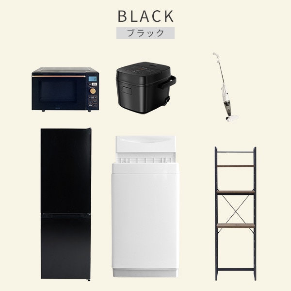 | 商品説明 | 【洗濯機】 ●容量:6.0kg(洗濯時)、1.5kg(風乾燥時) ●8つのコース搭載(標準・毛布・おいそぎ・ドライ・ソフト・つけおき・部屋干し・槽洗浄) 【冷蔵庫】 ●容量:157L(冷蔵室109L/冷凍室48L) ●年間消費電力量:270kWh/年 【オーブンレンジ】 ●容量18L、フラットテーブル ●高周波出力:650W(60Hzのみ)/500W/200W相当 【炊飯器】 ●炊飯容量:3.0合炊き ●8種の炊き分けメニュー:省エネ、白米、早炊き、玄米、無洗米、炊込み、おかゆ、温度調理 【クリーナー】 ●スティック&ハンディの2WAY ●吸込仕事率:40W 【家電収納ラック】 ●棚やコンセントの高さを、モノに合わせて変更可能 ●2口コンセント付き(計1500Wまで)でよく使う家電や雑貨をすっきりひとまとめ ●ラック以外メーカー保証:1年間 |