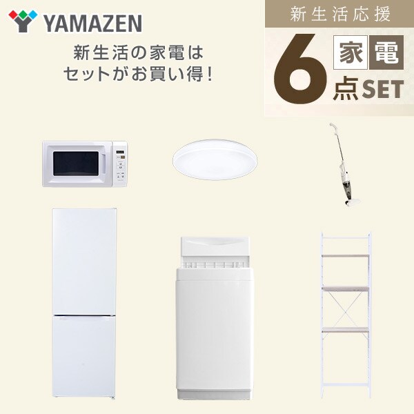 | 山善 YAMAZEN 【新生活応援セット】 家電セット 一人暮らし 新生活家電 6点セット 新品 ( 6kg洗濯機 157L冷蔵庫 電子レンジ シーリングライト スティッククリーナー 家電収納ラック ) |