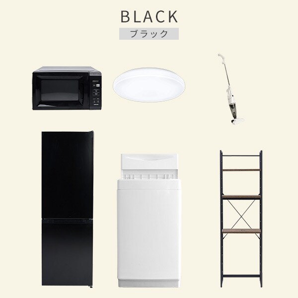 | 商品説明 | 【洗濯機】 ●容量:6.0kg(洗濯時)、1.5kg(風乾燥時) ●8つのコース搭載(標準・毛布・おいそぎ・ドライ・ソフト・つけおき・部屋干し・槽洗浄) 【冷蔵庫】 ●容量:157L(冷蔵室109L/冷凍室48L) ●年間消費電力量:270kWh/年 【電子レンジ】 ●容量17L、ターンテーブル ●高周波出力:50Hz(500W、200W相当)、60Hz(650W、500W、200W相当) 【シーリングライト】 ●全光束:3600lm ●30分、60分OFFタイマー付き 【クリーナー】 ●スティック&ハンディの2WAY ●吸込仕事率:40W 【家電収納ラック】 ●棚やコンセントの高さを、モノに合わせて変更可能 ●2口コンセント付き(計1500Wまで)でよく使う家電や雑貨をすっきりひとまとめ ●ラック以外メーカー保証:1年間 |