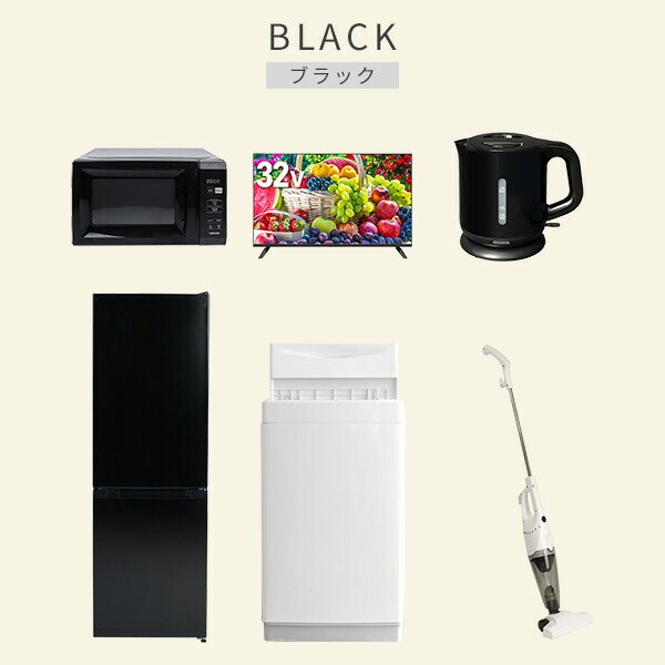 | 商品説明 | 【洗濯機】 ●容量:6.0kg(洗濯時)、1.5kg(風乾燥時) ●8つのコース搭載(標準・毛布・おいそぎ・ドライ・ソフト・つけおき・部屋干し・槽洗浄) 【冷蔵庫】 ●容量:157L(冷蔵室109L/冷凍室48L) ●年間消費電力量:270kWh/年 【電子レンジ】 ●容量17L、ターンテーブル ●高周波出力:50Hz(500W、200W相当)、60Hz(650W、500W、200W相当) 【32型液晶テレビ】 ●サイズ:32V型 ●2K対応ハイビジョン液晶テレビ 【電気ケトル】 ●容量:1.0L ●空焚き防止機能搭載 【クリーナー】 ●スティック&ハンディの2WAY ●吸込仕事率:40W ●ラック以外メーカー保証:1年間 |