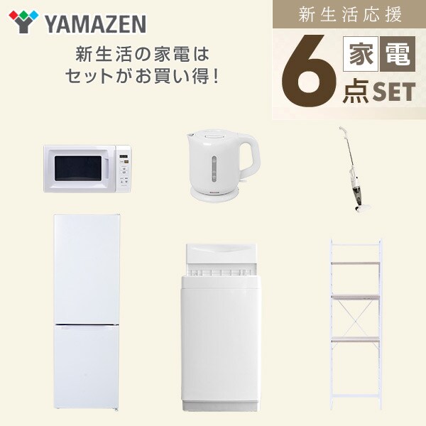 | 山善 YAMAZEN 【新生活応援セット】 家電セット 一人暮らし 新生活家電 6点セット 新品 ( 6kg洗濯機 157L冷蔵庫 電子レンジ 電気ケトル スティッククリーナー 家電収納ラック ) |