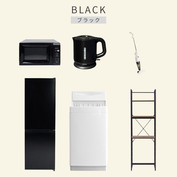 | 商品説明 | 【洗濯機】 ●容量:6.0kg(洗濯時)、1.5kg(風乾燥時) ●8つのコース搭載(標準・毛布・おいそぎ・ドライ・ソフト・つけおき・部屋干し・槽洗浄) 【冷蔵庫】 ●容量:157L(冷蔵室109L/冷凍室48L) ●年間消費電力量:270kWh/年 【電子レンジ】 ●容量17L、ターンテーブル ●高周波出力:50Hz(500W、200W相当)、60Hz(650W、500W、200W相当) 【電気ケトル】 ●容量:1.0L ●空焚き防止機能搭載 【クリーナー】 ●スティック&ハンディの2WAY ●吸込仕事率:40W 【家電収納ラック】 ●棚やコンセントの高さを、モノに合わせて変更可能 ●2口コンセント付き(計1500Wまで)でよく使う家電や雑貨をすっきりひとまとめ ●ラック以外メーカー保証:1年間 |