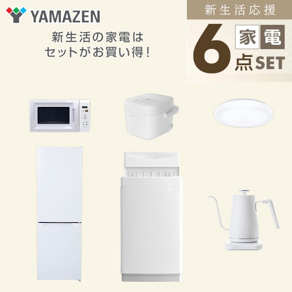 新生活家電セット 6点セット 一人暮らし (6kg洗濯機 157L冷蔵庫 電子レンジ 炊飯器 シーリングライト 温調ケトル) ひとり暮らし 単身赴任新 学生 入学 おすすめ 山善 YAMAZEN【送料無料】
