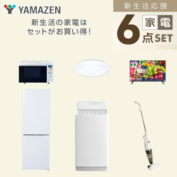 新生活家電セット 6点セット 一人暮らし (6kg洗濯機 157L冷蔵庫 オーブンレンジ シーリングライト 32型液晶テレビ スティッククリーナー) ひとり暮らし 単身赴任新 学生 入学 おすすめ 山善 YAMAZEN【送料無料】