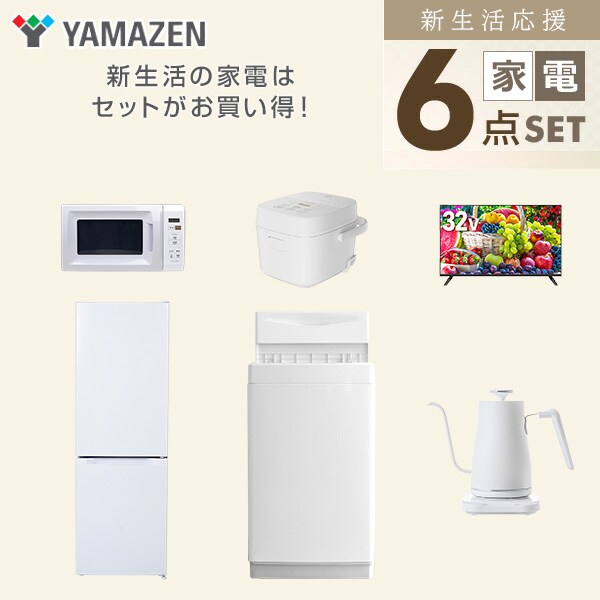 新生活家電セット 6点セット 一人暮らし (6kg洗濯機 157L冷蔵庫 電子レンジ 炊飯器 32型液晶テレビ 温調ケトル) ひとり暮らし 単身赴任新 学生 入学 おすすめ 山善 YAMAZEN【送料無料】