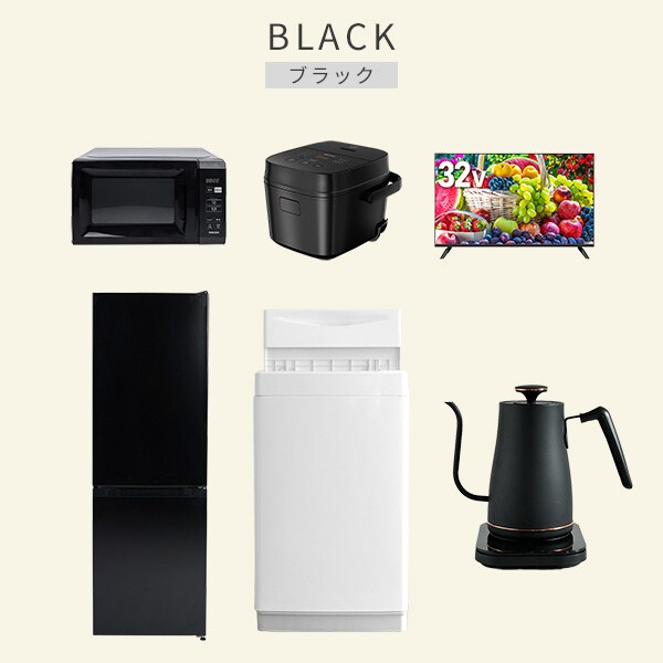 | 商品説明 | 【洗濯機】 ●容量:6.0kg(洗濯時)、1.5kg(風乾燥時) ●8つのコース搭載(標準・毛布・おいそぎ・ドライ・ソフト・つけおき・部屋干し・槽洗浄) 【冷蔵庫】 ●容量:157L(冷蔵室109L/冷凍室48L) ●年間消費電力量:270kWh/年 【電子レンジ】 ●容量17L、ターンテーブル ●高周波出力:50Hz(500W、200W相当)、60Hz(650W、500W、200W相当) 【炊飯器】 ●炊飯容量:3.0合炊き ●8種の炊き分けメニュー:省エネ、白米、早炊き、玄米、無洗米、炊込み、おかゆ、温度調理 【32型液晶テレビ】 ●サイズ:32V型 ●2K対応ハイビジョン液晶テレビ 【電気温調ケトル】 ●容量:800ml ●温度設定範囲:60-100度の間で1度単位で温度調整可能 ●ラック以外メーカー保証:1年間 |