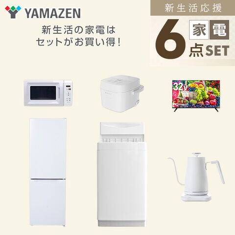 | 山善 YAMAZEN 【新生活応援セット】 家電セット 一人暮らし 新生活家電 6点セット 新品 ( 6kg洗濯機 157L冷蔵庫 電子レンジ 炊飯器 32型液晶テレビ 温調ケトル ) |