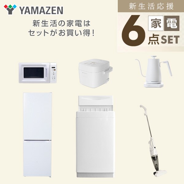 新生活家電セット 6点セット 一人暮らし (6kg洗濯機 157L冷蔵庫 電子レンジ 炊飯器 温調ケトル スティッククリーナー) ひとり暮らし 単身赴任新 学生 入学 おすすめ 山善 YAMAZEN【送料無料】