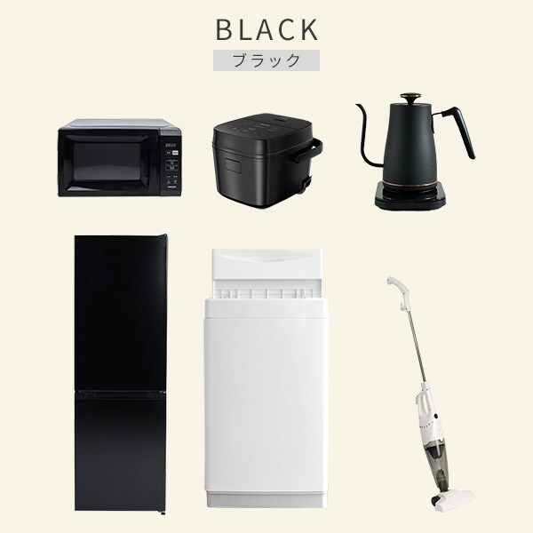 | 商品説明 | 【洗濯機】 ●容量:6.0kg(洗濯時)、1.5kg(風乾燥時) ●8つのコース搭載(標準・毛布・おいそぎ・ドライ・ソフト・つけおき・部屋干し・槽洗浄) 【冷蔵庫】 ●容量:157L(冷蔵室109L/冷凍室48L) ●年間消費電力量:270kWh/年 【電子レンジ】 ●容量17L、ターンテーブル ●高周波出力:50Hz(500W、200W相当)、60Hz(650W、500W、200W相当) 【炊飯器】 ●炊飯容量:3.0合炊き ●8種の炊き分けメニュー:省エネ、白米、早炊き、玄米、無洗米、炊込み、おかゆ、温度調理 【電気温調ケトル】 ●容量:800ml ●温度設定範囲:60-100度の間で1度単位で温度調整可能 【クリーナー】 ●スティック&ハンディの2WAY ●吸込仕事率:40W ●ラック以外メーカー保証:1年間 |