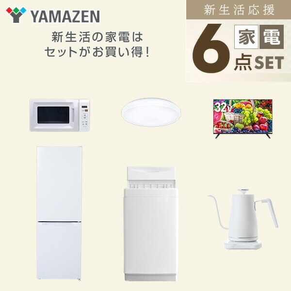 | 山善 YAMAZEN 【新生活応援セット】 家電セット 一人暮らし 新生活家電 6点セット 新品 ( 6kg洗濯機 157L冷蔵庫 電子レンジ シーリングライト 32型液晶テレビ 温調ケトル ) |