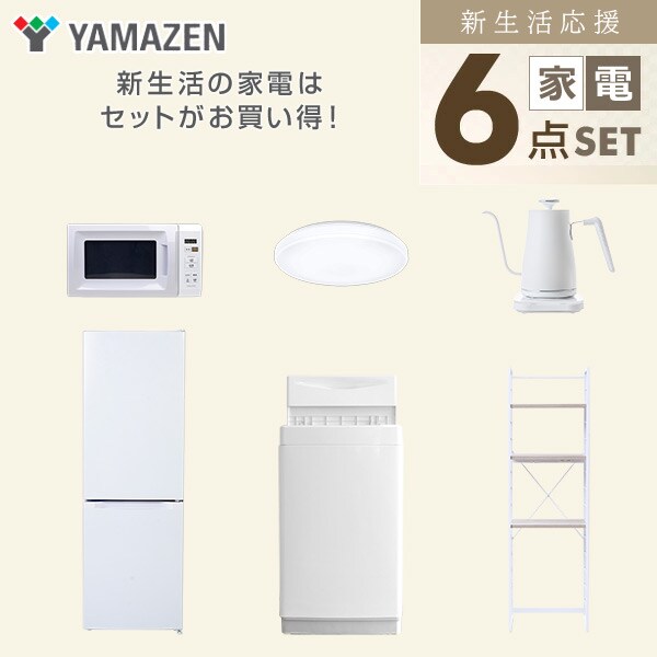 新生活家電セット 6点セット 一人暮らし (6kg洗濯機 157L冷蔵庫 電子レンジ シーリングライト 温調ケトル 家電収納ラック) ひとり暮らし 単身赴任新 学生 入学 おすすめ 山善 YAMAZEN【送料無料】
