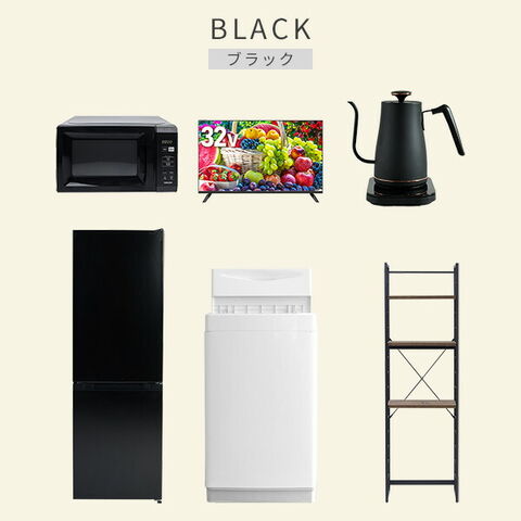 | 商品説明 | 【洗濯機】 ●容量:6.0kg(洗濯時)、1.5kg(風乾燥時) ●8つのコース搭載(標準・毛布・おいそぎ・ドライ・ソフト・つけおき・部屋干し・槽洗浄) 【冷蔵庫】 ●容量:157L(冷蔵室109L/冷凍室48L) ●年間消費電力量:270kWh/年 【電子レンジ】 ●容量17L、ターンテーブル ●高周波出力:50Hz(500W、200W相当)、60Hz(650W、500W、200W相当) 【32型液晶テレビ】 ●サイズ:32V型 ●2K対応ハイビジョン液晶テレビ 【電気温調ケトル】 ●容量:800ml ●温度設定範囲:60-100度の間で1度単位で温度調整可能 【家電収納ラック】 ●棚やコンセントの高さを、モノに合わせて変更可能 ●2口コンセント付き(計1500Wまで)でよく使う家電や雑貨をすっきりひとまとめ ●ラック以外メーカー保証:1年間 |
