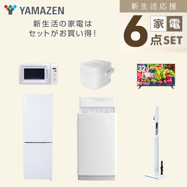 新生活家電セット 6点セット 一人暮らし (6kg洗濯機 157L冷蔵庫 電子レンジ 炊飯器 32型液晶テレビ 軽量クリーナー) ひとり暮らし 単身赴任新 学生 入学 おすすめ 山善 YAMAZEN【送料無料】