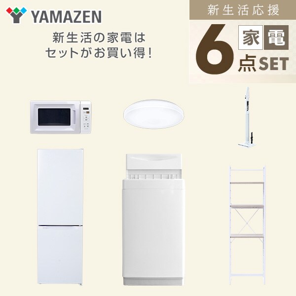 新生活家電セット 6点セット 一人暮らし (6kg洗濯機 157L冷蔵庫 電子レンジ シーリングライト 軽量クリーナー 家電収納ラック) ひとり暮らし 単身赴任新 学生 入学 おすすめ 山善 YAMAZEN【送料無料】