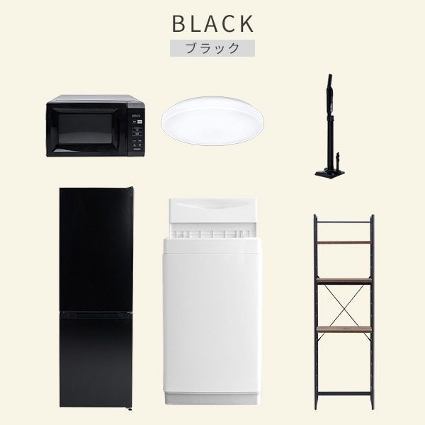 | 商品説明 | 【洗濯機】 ●容量:6.0kg(洗濯時)、1.5kg(風乾燥時) ●8つのコース搭載(標準・毛布・おいそぎ・ドライ・ソフト・つけおき・部屋干し・槽洗浄) 【冷蔵庫】 ●容量:157L(冷蔵室109L/冷凍室48L) ●年間消費電力量:270kWh/年 【電子レンジ】 ●容量17L、ターンテーブル ●高周波出力:50Hz(500W、200W相当)、60Hz(650W、500W、200W相当) 【シーリングライト】 ●全光束:3600lm ●30分、60分OFFタイマー付き 【軽量クリーナー】 ●わずか820gの軽量クリーナー ●連続使用時間:(強)約10分、(標準)約25分 【家電収納ラック】 ●棚やコンセントの高さを、モノに合わせて変更可能 ●2口コンセント付き(計1500Wまで)でよく使う家電や雑貨をすっきりひとまとめ ●ラック以外メーカー保証:1年間 |