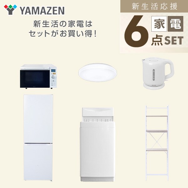 新生活家電セット 6点セット 一人暮らし (6kg洗濯機 157L冷蔵庫 オーブンレンジ シーリングライト 電気ケトル 家電収納ラック) ひとり暮らし 単身赴任新 学生 入学 おすすめ 山善 YAMAZEN【送料無料】