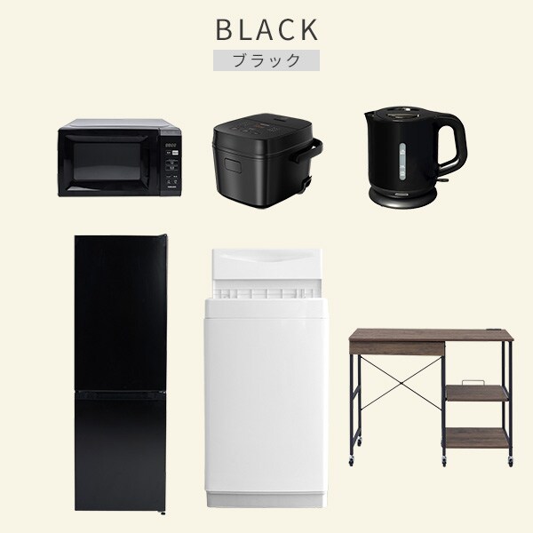 | 商品説明 | 【洗濯機】 ●容量:6.0kg(洗濯時)、1.5kg(風乾燥時) ●8つのコース搭載(標準・毛布・おいそぎ・ドライ・ソフト・つけおき・部屋干し・槽洗浄) 【冷蔵庫】 ●容量:157L(冷蔵室109L/冷凍室48L) ●年間消費電力量:270kWh/年 【電子レンジ】 ●容量17L、ターンテーブル ●高周波出力:50Hz(500W、200W相当)、60Hz(650W、500W、200W相当) 【炊飯器】 ●炊飯容量:3.0合炊き ●8種の炊き分けメニュー:省エネ、白米、早炊き、玄米、無洗米、炊込み、おかゆ、温度調理 【電気ケトル】 ●容量:1.0L ●空焚き防止機能搭載 【レンジラック】 ●ゴミ箱上を活用する、しっかり頑丈なキッチンラック ●2口コンセント付き(計1500Wまで)でよく使う家電や雑貨をすっきりひとまとめ ●ラック以外メーカー保証:1年間 |