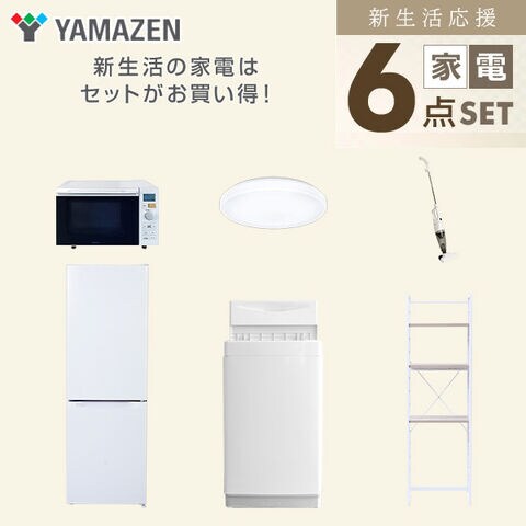 新生活家電セット 6点セット 一人暮らし (6kg洗濯機 157L冷蔵庫 オーブンレンジ シーリングライト スティッククリーナー 家電収納ラック) ひとり暮らし 単身赴任新 学生 入学 おすすめ 山善 YAMAZEN【送料無料】