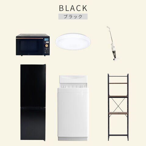 【新生活応援セット】 家電セット 一人暮らし 新生活家電 6点セット 新品 ( 6kg洗濯機 157L冷蔵庫 オーブンレンジ シーリングライト スティッククリーナー 家電収納ラック )