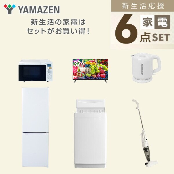 新生活家電セット 6点セット 一人暮らし (6kg洗濯機 157L冷蔵庫 オーブンレンジ 32型液晶テレビ 電気ケトル スティッククリーナー) ひとり暮らし 単身赴任新 学生 入学 おすすめ 山善 YAMAZEN【送料無料】