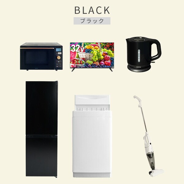 | 商品説明 | 【洗濯機】 ●容量:6.0kg(洗濯時)、1.5kg(風乾燥時) ●8つのコース搭載(標準・毛布・おいそぎ・ドライ・ソフト・つけおき・部屋干し・槽洗浄) 【冷蔵庫】 ●容量:157L(冷蔵室109L/冷凍室48L) ●年間消費電力量:270kWh/年 【オーブンレンジ】 ●容量18L、フラットテーブル ●高周波出力:650W(60Hzのみ)/500W/200W相当 【32型液晶テレビ】 ●サイズ:32V型 ●2K対応ハイビジョン液晶テレビ 【電気ケトル】 ●容量:1.0L ●空焚き防止機能搭載 【クリーナー】 ●スティック&ハンディの2WAY ●吸込仕事率:40W ●ラック以外メーカー保証:1年間 |
