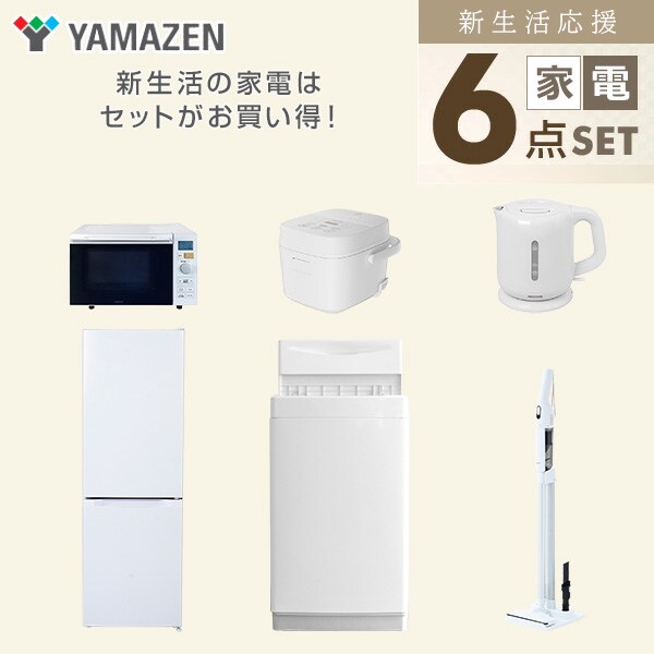新生活家電セット 6点セット 一人暮らし (6kg洗濯機 157L冷蔵庫 オーブンレンジ 炊飯器 電気ケトル 軽量クリーナー) ひとり暮らし 単身赴任新 学生 入学 おすすめ 山善 YAMAZEN【送料無料】