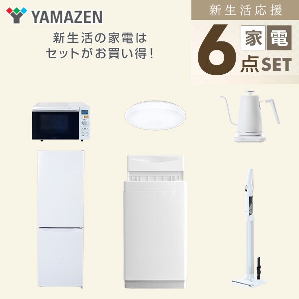 新生活家電セット 6点セット 一人暮らし (6kg洗濯機 157L冷蔵庫 オーブンレンジ シーリングライト 温調ケトル 軽量クリーナー) ひとり暮らし 単身赴任新 学生 入学 おすすめ 山善 YAMAZEN【送料無料】