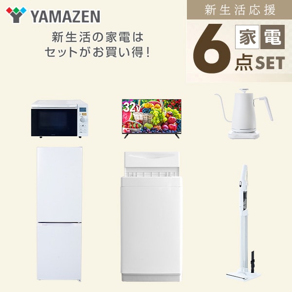 新生活家電セット 6点セット 一人暮らし (6kg洗濯機 157L冷蔵庫 オーブンレンジ 32型液晶テレビ 温調ケトル 軽量クリーナー) ひとり暮らし 単身赴任新 学生 入学 おすすめ 山善 YAMAZEN【送料無料】