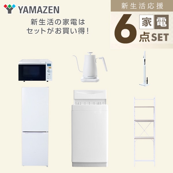 新生活家電セット 6点セット 一人暮らし (6kg洗濯機 157L冷蔵庫 オーブンレンジ 温調ケトル 軽量クリーナー 家電収納ラック) ひとり暮らし 単身赴任新 学生 入学 おすすめ 山善 YAMAZEN【送料無料】