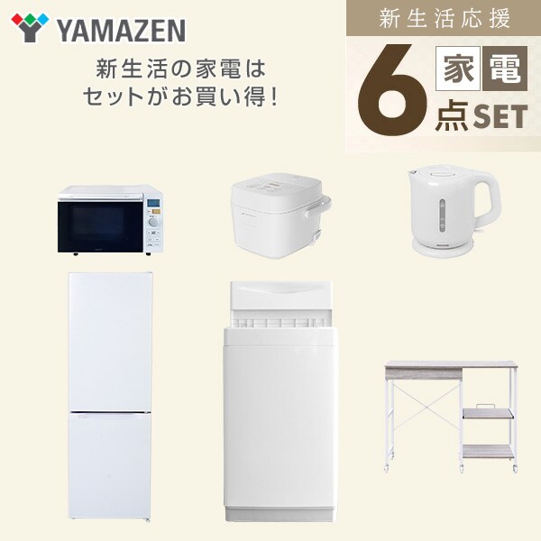 新生活家電セット 6点セット 一人暮らし (6kg洗濯機 157L冷蔵庫 オーブンレンジ 炊飯器 電気ケトル レンジラック) ひとり暮らし 単身赴任新 学生 入学 おすすめ 山善 YAMAZEN【送料無料】
