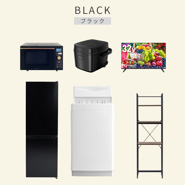 | 商品説明 | 【洗濯機】 ●容量:6.0kg(洗濯時)、1.5kg(風乾燥時) ●8つのコース搭載(標準・毛布・おいそぎ・ドライ・ソフト・つけおき・部屋干し・槽洗浄) 【冷蔵庫】 ●容量:157L(冷蔵室109L/冷凍室48L) ●年間消費電力量:270kWh/年 【オーブンレンジ】 ●容量18L、フラットテーブル ●高周波出力:650W(60Hzのみ)/500W/200W相当 【炊飯器】 ●炊飯容量:3.0合炊き ●8種の炊き分けメニュー:省エネ、白米、早炊き、玄米、無洗米、炊込み、おかゆ、温度調理 【32型液晶テレビ】 ●サイズ:32V型 ●2K対応ハイビジョン液晶テレビ 【家電収納ラック】 ●棚やコンセントの高さを、モノに合わせて変更可能 ●2口コンセント付き(計1500Wまで)でよく使う家電や雑貨をすっきりひとまとめ ●ラック以外メーカー保証:1年間 |