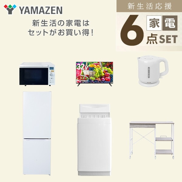 新生活家電セット 6点セット 一人暮らし (6kg洗濯機 157L冷蔵庫 オーブンレンジ 32型液晶テレビ 電気ケトル レンジラック) ひとり暮らし 単身赴任新 学生 入学 おすすめ 山善 YAMAZEN【送料無料】