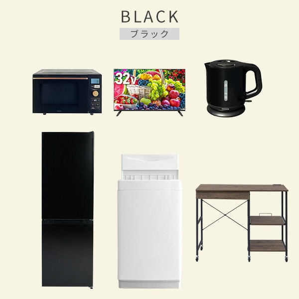 | 商品説明 | 【洗濯機】 ●容量:6.0kg(洗濯時)、1.5kg(風乾燥時) ●8つのコース搭載(標準・毛布・おいそぎ・ドライ・ソフト・つけおき・部屋干し・槽洗浄) 【冷蔵庫】 ●容量:157L(冷蔵室109L/冷凍室48L) ●年間消費電力量:270kWh/年 【オーブンレンジ】 ●容量18L、フラットテーブル ●高周波出力:650W(60Hzのみ)/500W/200W相当 【32型液晶テレビ】 ●サイズ:32V型 ●2K対応ハイビジョン液晶テレビ 【電気ケトル】 ●容量:1.0L ●空焚き防止機能搭載 【レンジラック】 ●ゴミ箱上を活用する、しっかり頑丈なキッチンラック ●2口コンセント付き(計1500Wまで)でよく使う家電や雑貨をすっきりひとまとめ ●ラック以外メーカー保証:1年間 |